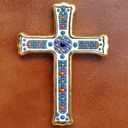 Cruz de cerámica esmaltada con oro.
