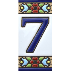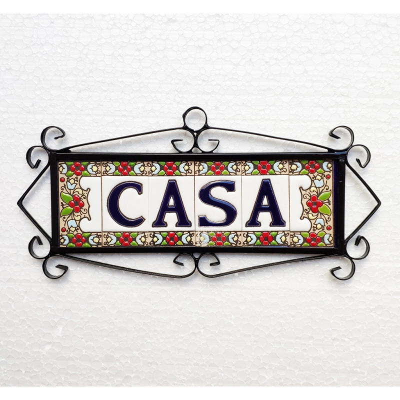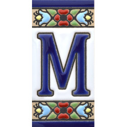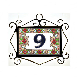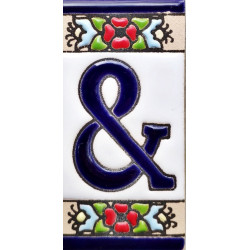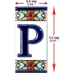 Letreros con números y letras en azulejo de cerámica policromada, pintados a mano en técnica cuerda seca para placas con nombres, direcciones y señaléctica. Texto personalizable.