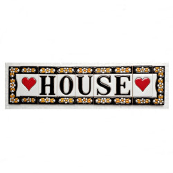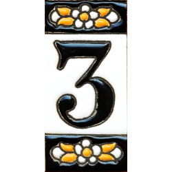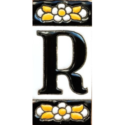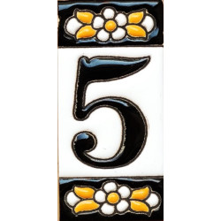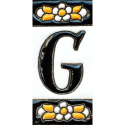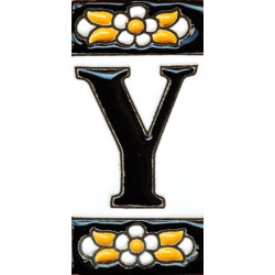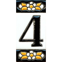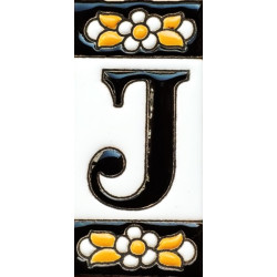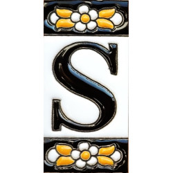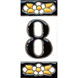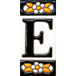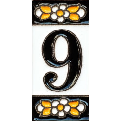 Letreros con números y letras en azulejo de cerámica policromada, pintados a mano en técnica cuerda seca para placas con nombres, direcciones y señaléctica. Texto personalizable.