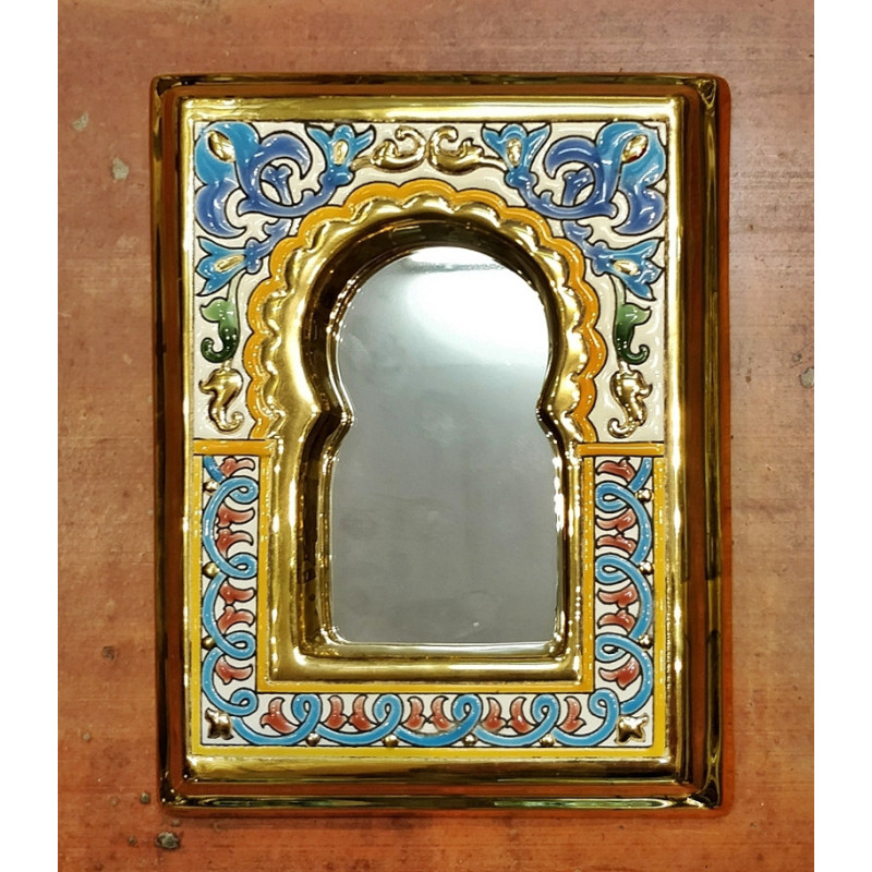 Espejo de cerámica en Estilo "Cuerda Seca" - 19x14 cm. - Sevilla (España).