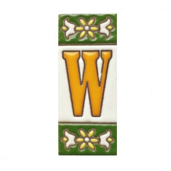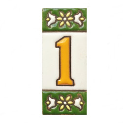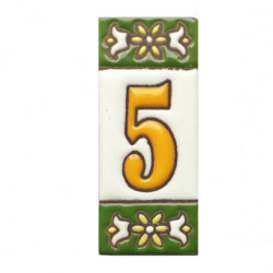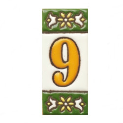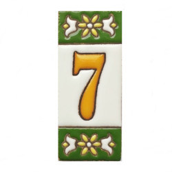 Letreros con números y letras en azulejo de cerámica policromada, pintados a mano en técnica cuerda seca para placas con nombres, direcciones y señaléctica. Texto personalizable.