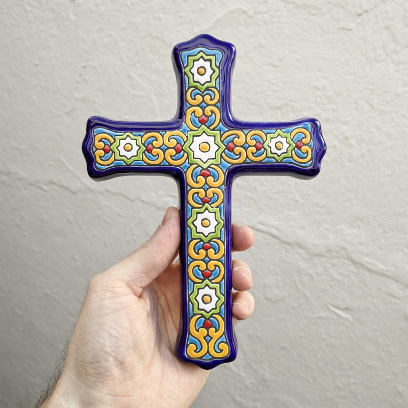 Cruz de cerámica ref.993 - 21 cm. (8") - "Cuerda seca" - Hecho en Sevilla, Andalucía -