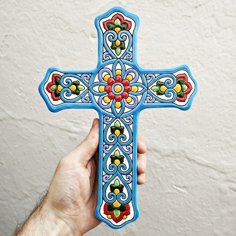 Cruz de cerámica - Estilo "Cuerda seca" - 27 cm. (10.6") - Hecho en Sevilla (España)