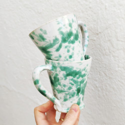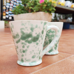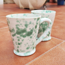 Set de dos tazas en "gres" - 10.5cm. (4.1") - Estilo "Gotas/Verde" - Hechas en Andalucía (España) -