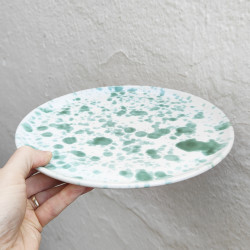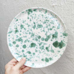 Platos de cerámica en gres - 2 unidades - Estilo "Gotas/Verde" - Hechos en Córdoba, Andalucía (España) -