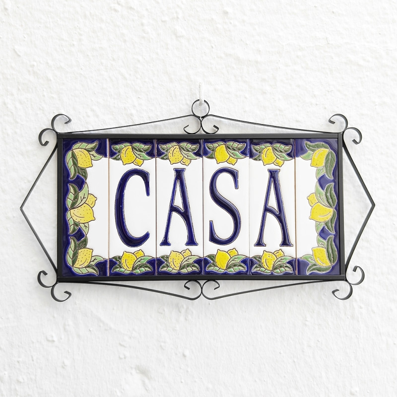• Letreros con números y letras en azulejo de cerámica policromada, pintados a mano en técnica cuerda seca para placas con nombres, direcciones y señalética.