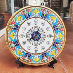 Reloj-Plato de cerámica en Estilo "Cuerda Seca" - 24cm. (9.45") - 1 pieza - Hecho en Sevilla (España) -