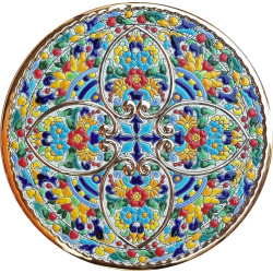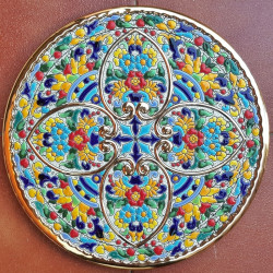 "Artecer" es el más prestigioso de los fabricantes de estos platos de cerámica Sevillanos. Estos platos están esmaltados con oro de 24 quilates. Es conocido como el trabajo de “cuerda seca”, que fue traído por los árabes en el siglo VIII a Andalucía. Desde entonces este trabajo artesanal se ha realizado en España.