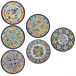 Set de seis posavasos de cerámica - 14cm. (5.5") - "Cuerda seca" - Hecho en Sevilla, Andalucía -