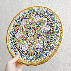 Certificamos que esta pieza pintada en cuerda seca está realizada a mano y acabada en oro de 24Kl.