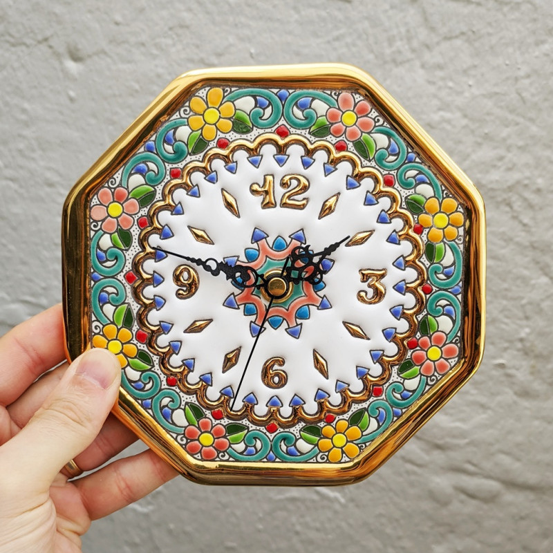 Reloj-Plato de cerámica en Estilo "Cuerda Seca" - 17cm. (6.7") - Hecho en Sevilla (España) -