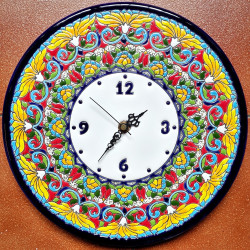 Reloj-Plato de cerámica en Estilo "Cuerda Seca" - 29cm. (11.4") - 1 pieza - Hecho en Sevilla (España) -