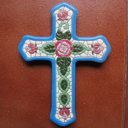 Croix en céramique réf.994 - 27 cm. (10.6") - "Corde sèche" - Fabriqué à Séville, Andalousie -