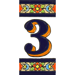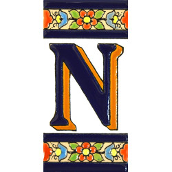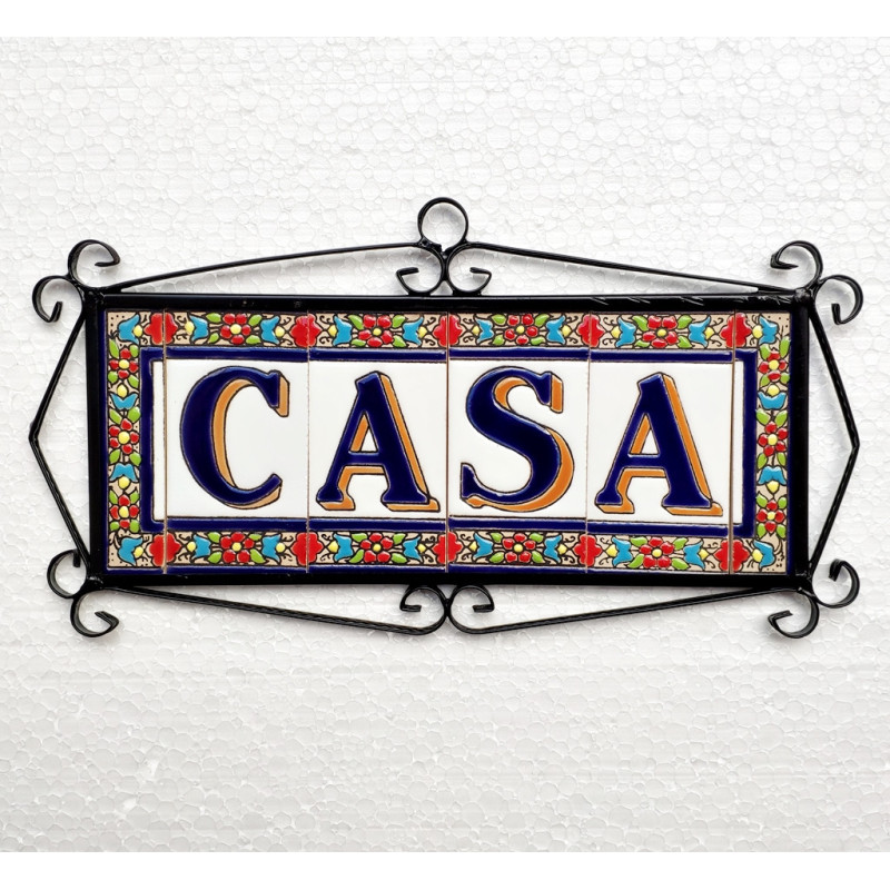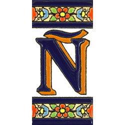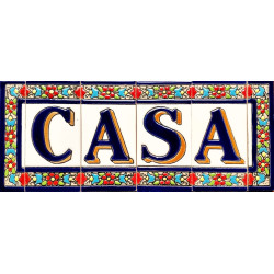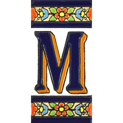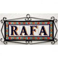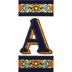 Enseignes avec chiffres et lettres en céramique polychrome, peintes à la main en technique corde sèche pour assiettes avec noms, adresses et signalétique. Texte personnalisable.