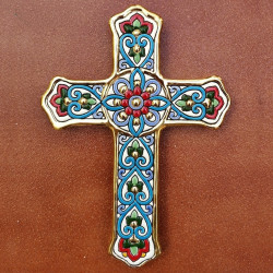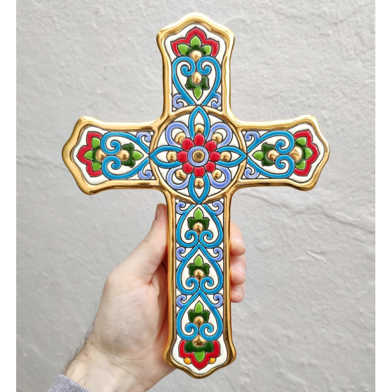 Croix en céramique réf.994-G - 27 cm. (10.6") - "Corde sèche" - Or 24 carats - Fabriqué à Séville, Andalousie -