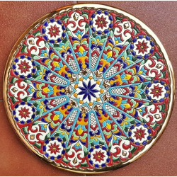 "Artecer" est le plus prestigieux des fabricants de ces assiettes en céramique de Séville. Ces assiettes sont émaillées à l'or 24 carats. Il est connu comme le travail de la "corde sèche", qui a été apporté par les Arabes au 8ème siècle en Andalousie. Depuis lors, ce savoir-faire a été réalisé en Espagne.