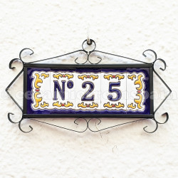 Enseignes avec chiffres et lettres en céramique polychrome, peintes à la main en technique corde sèche pour assiettes avec noms, adresses et signalétique. Texte personnalisable.
