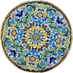 "Artecer" est le plus prestigieux des fabricants de ces assiettes en céramique de Séville. Ces assiettes sont émaillées à l'or 24 carats. Il est connu comme le travail de la "corde sèche", qui a été apporté par les Arabes au 8ème siècle en Andalousie. Depuis lors, ce savoir-faire a été réalisé en Espagne.