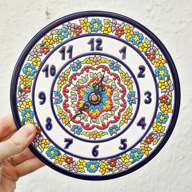 L'horloge en céramique de style «corde sèche» - 22cm. (8.7") - Fabriqué à Séville (Espagne) -