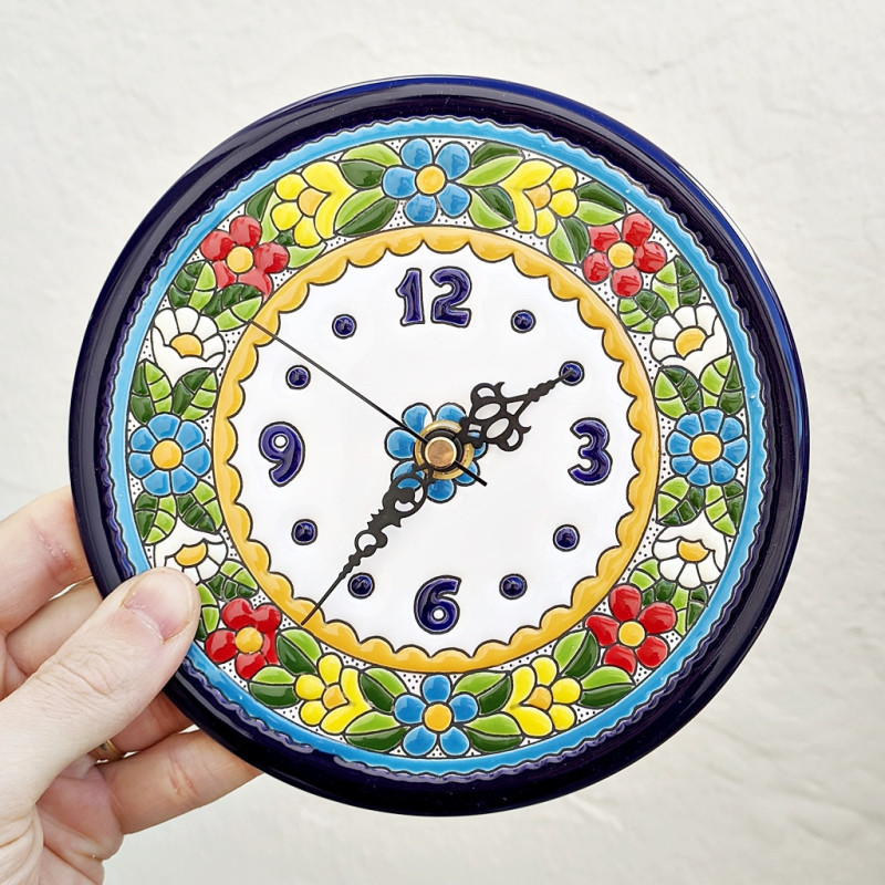 L'horloge en céramique de style «corde sèche» - 17 cm. (6.7") - Fabriqué à Séville (Espagne) -