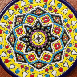 "Artecer" est le plus prestigieux des fabricants de ces assiettes en céramique de Séville. Ces assiettes sont émaillées à l'or 24 carats. Il est connu comme le travail de la "corde sèche", qui a été apporté par les Arabes au 8ème siècle en Andalousie. Depuis lors, ce savoir-faire a été réalisé en Espagne.