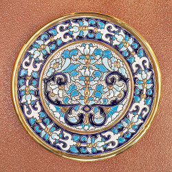 "Artecer" est le plus prestigieux des fabricants de ces assiettes en céramique de Séville. Ces assiettes sont émaillées à l'or 24 carats. Il est connu comme le travail de la "corde sèche", qui a été apporté par les Arabes au 8ème siècle en Andalousie. Depuis lors, ce savoir-faire a été réalisé en Espagne.