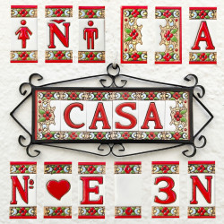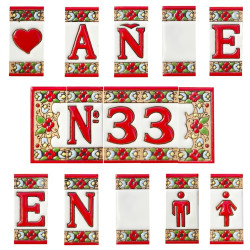 Lettres et chiffres en céramique - Desing "FLOR-Rojo" - Fabriqué en Espagne -