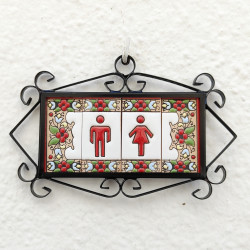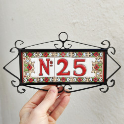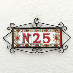 Enseignes avec chiffres et lettres en céramique polychrome, peintes à la main en technique corde sèche pour assiettes avec noms, adresses et signalétique. Texte personnalisable.
