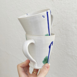 Ensemble de 2 tasses en grès faites à la main et peintes à la main.