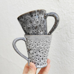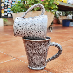 Set de deux mugs en "grès" - 10,5cm. (4.1") - Style " Snake/Noir" - Fabriqué en Andalousie (Espagne) -