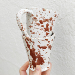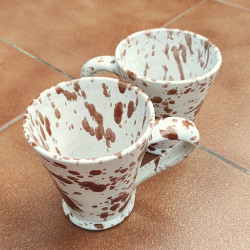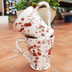 Set de deux mugs en "grès" - 10,5cm. (4.1") - Style "Gouttes/Marron" - Fabriqué en Andalousie (Espagne) -