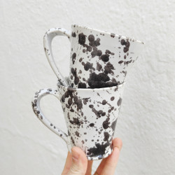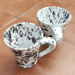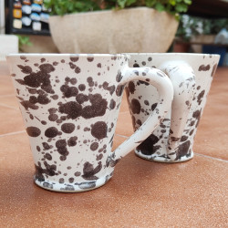 Set de deux mugs en "grès" - 10,5cm. (4.1") - Style " Gouttes/Noir" - Fabriqué en Andalousie (Espagne) -