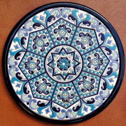 "Artecer" est le plus prestigieux des fabricants de ces assiettes en céramique de Séville. Ces assiettes sont émaillées à l'or 24 carats. Il est connu comme le travail de la "corde sèche", qui a été apporté par les Arabes au 8ème siècle en Andalousie. Depuis lors, ce savoir-faire a été réalisé en Espagne.