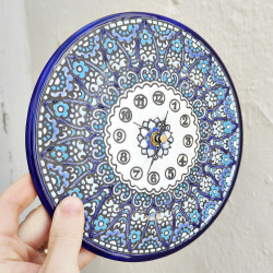 "Artecer" est le plus prestigieux des fabricants de ces assiettes en céramique de Séville. Ces assiettes sont émaillées à l'or 24 carats. Il est connu comme le travail de la "corde sèche", qui a été apporté par les Arabes au 8ème siècle en Andalousie. Depuis lors, ce savoir-faire a été réalisé en Espagne.