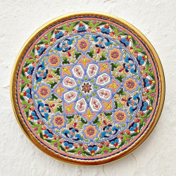"Artecer" est le plus prestigieux des fabricants de ces assiettes en céramique de Séville. Ces assiettes sont émaillées à l'or 24 carats. Il est connu comme le travail de la "corde sèche", qui a été apporté par les Arabes au 8ème siècle en Andalousie. Depuis lors, ce savoir-faire a été réalisé en Espagne.