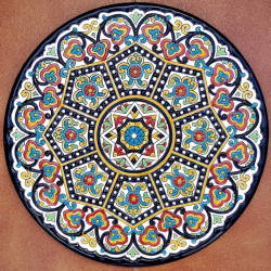 "Artecer" est le plus prestigieux des fabricants de ces assiettes en céramique de Séville. Ces assiettes sont émaillées à l'or 24 carats. Il est connu comme le travail de la "corde sèche", qui a été apporté par les Arabes au 8ème siècle en Andalousie. Depuis lors, ce savoir-faire a été réalisé en Espagne.