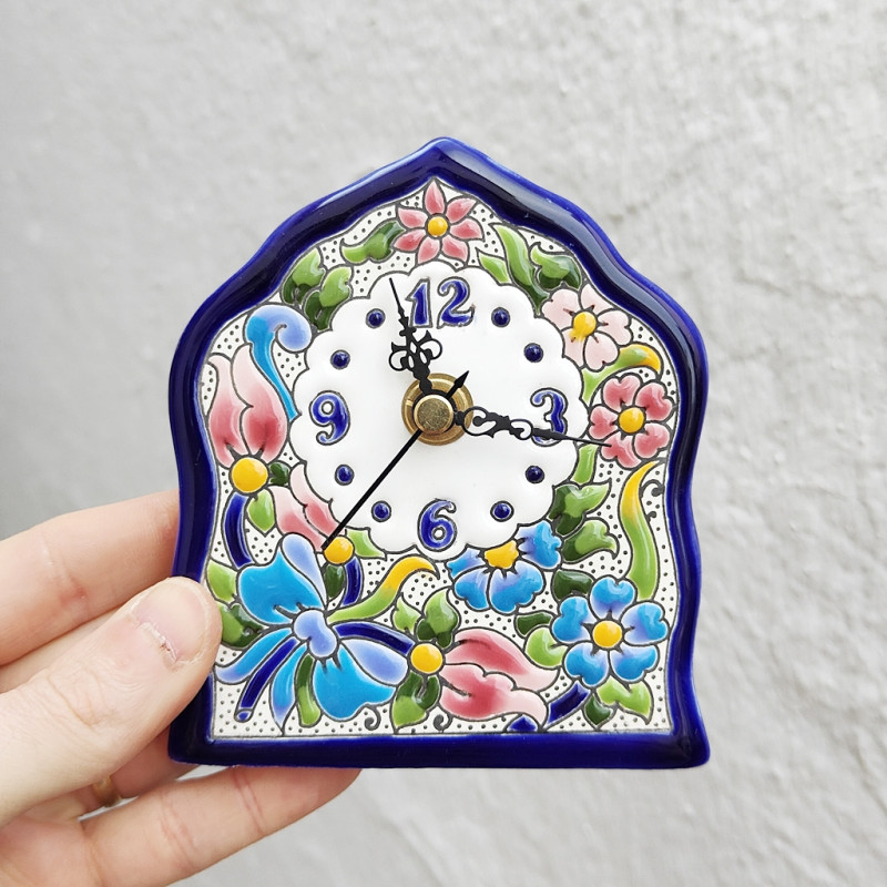 L'horloge en céramique de style «corde sèche» - 12 cm. - Fabriqué à Séville (Espagne) -