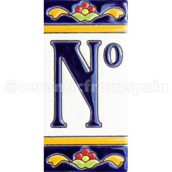 Panneaux avec chiffres et lettres en céramique polychrome, peints à la main en technique corde sèche pour plaques avec noms, directions et signalisation. Texte personnalisable.