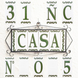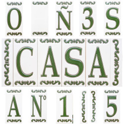 LETTRES ET CHIFFRES EN CÉRAMIQUE - 11 cm. x 5,9 cm. (4,3 po X 2,3 po) - DESIGN "CLASICA-VERDE" - Fabriqué en Espagne -
