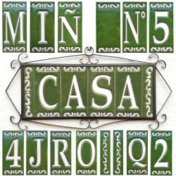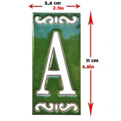 LETTRES ET CHIFFRES EN CÉRAMIQUE - 11 cm. x 5,9 cm. (4,3 po X 2,3 po) - DESIGN "FONDO-VERDE" - Fabriqué en Espagne -