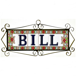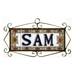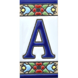 Signs with numbers and letters in polychrome ceramic tiles, hand-painted for making names, directions and signaling. Customizable text.