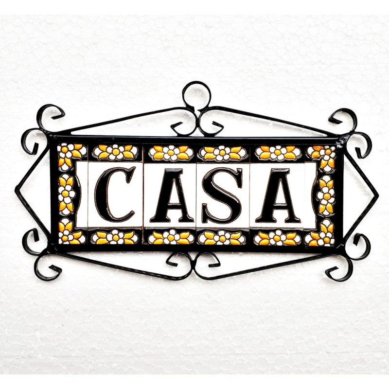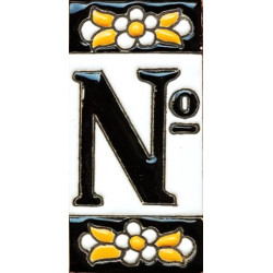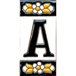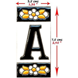 Signs with numbers and letters in polychrome ceramic tiles, hand-painted for making names, directions and signaling. Customizable text.