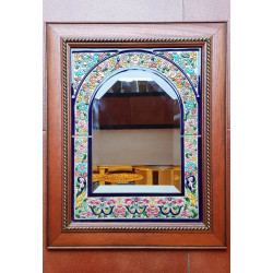 Ceramic mirror with wooden frame.