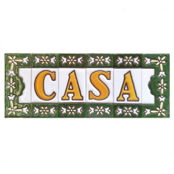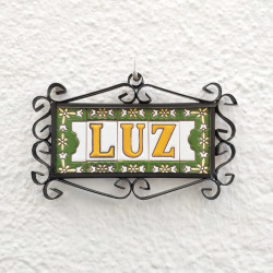 Signs with numbers and letters in polychrome ceramic tiles, hand-painted for making names, directions and signaling. Customizable text.