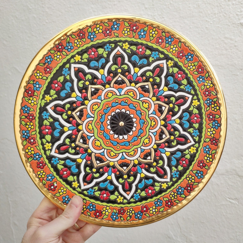 "Artecer" is the most prestigious of the manufacturers of these Seville ceramic plates. These plates are enamelled with 24-karat gold. It is known as the work of "dry rope", which was brought by the Arabs in the 8th century to Andalusia. Since then this craftsmanship has been carried out in Spain.