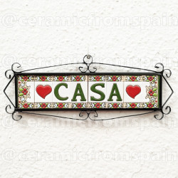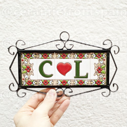 Signs with numbers and letters in polychrome ceramic tiles, hand-painted for making names, directions and signaling. Customizable text.