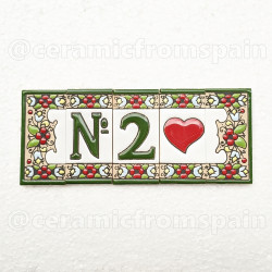 Ceramic tile letters and numbers - Design "FLOR-1-Verde" - Made in Spain -