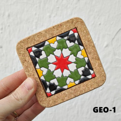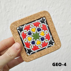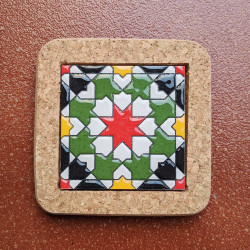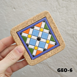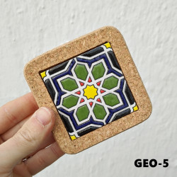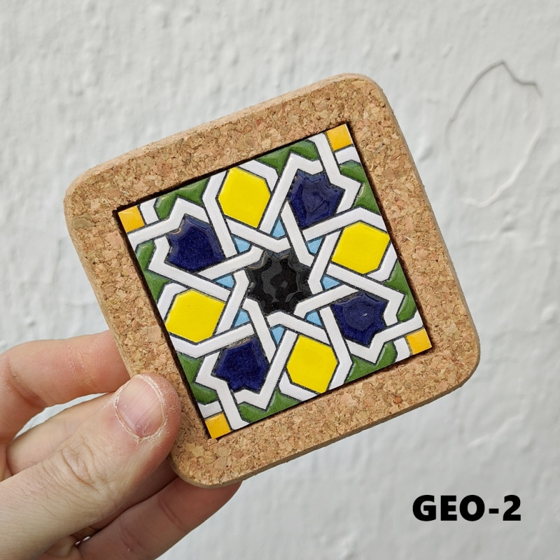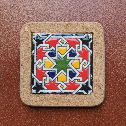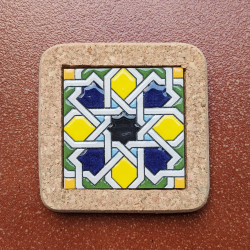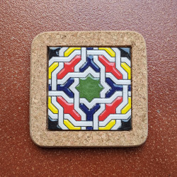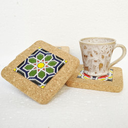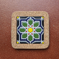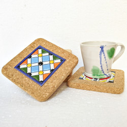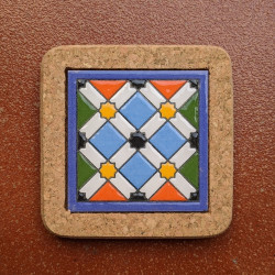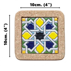 Set of six ceramic coasters with cork - 10 cm (4") - "Cuerda seca" - Made in Seville, Andalusia -