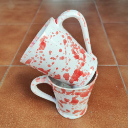 Set of two mugs in "stoneware" - 10.5cm. (4.1 ") - Style" Drops/Red"- Made in Andalusia (Spain) -