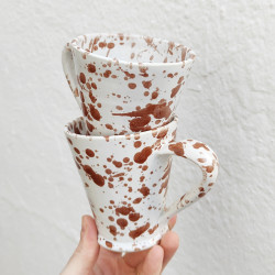 Set of two mugs in "stoneware" - 10.5cm. (4.1 ") - Style "Drops/Brown" - Made in Andalusia (Spain) -
